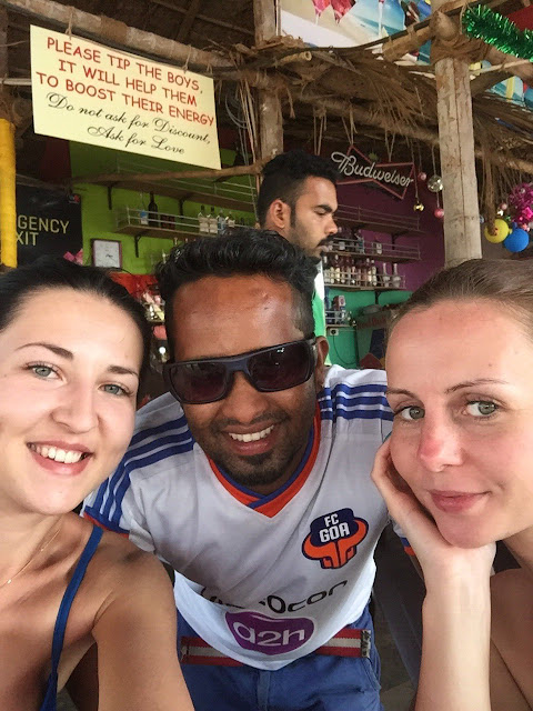 А теперь 5 минут рекламы. Всем советую кафе на пляже Кандоллим под названием "Streeng Fellos" - название, конечно, заставляет улыбнуться всех. Нам его посоветовали в тур агентстве. Люди ездят сюда даже с других пляжей. А все почему? Во-первых, там очень крутой персонал - молодые веселые парни. Которые поставят тебе лежат в идеальном положении к солнцу, установят зонтик, в течение дня его переставляют, открывают-закрывают; носят заказ прямо к шезлонгу (грязные тарелки и пустые бутылки уносят тоже сами); большой выбор импортного алкоголя и вкусных коктейлей (я пробовала, они на самом деле вкусные); кальяны за 500 рупий; богатое меню (очень вкусные блинчики с шоколадом и клубникой). Если желаете, можете договориться с ними об экскурсиях. В море мы ни разу не встретили мусора или медуз. А еще, что немало важно: на пляже много всяких торговцев (парэо, браслеты, барабаны и прочей дребедени), которые по несколько раз на дню пристают к тебе. В первые день это еще не напрягало, а вот потом.... И вот мальчики (персонал) молодцы в этом плане, они сразу всех отгоняют. Чего не скажешь в кафе "У Виктории", там сами приходилось их шугать. Кстати в нашем кафе есть массажист, можно воспользоваться его услугами (правда не бесплатно). Так что всем советую зайти сюда. Мы в последний день очень обрадовались, что нам посетовали именно это кафе, а не какое-либо другое. Один раз мы туда попали и на протяжении всего отдыха только туда и ходили. Соответственно, мы не поняли, что же наши нашли в том своем кафе? Да они просто в нашем не были!)))) А теперь как его найти: если идете по главной улице на пляж, то поворачиваете направо и идете минут 5 и там увидите большое деревянное кафе (фотография чуть выше).